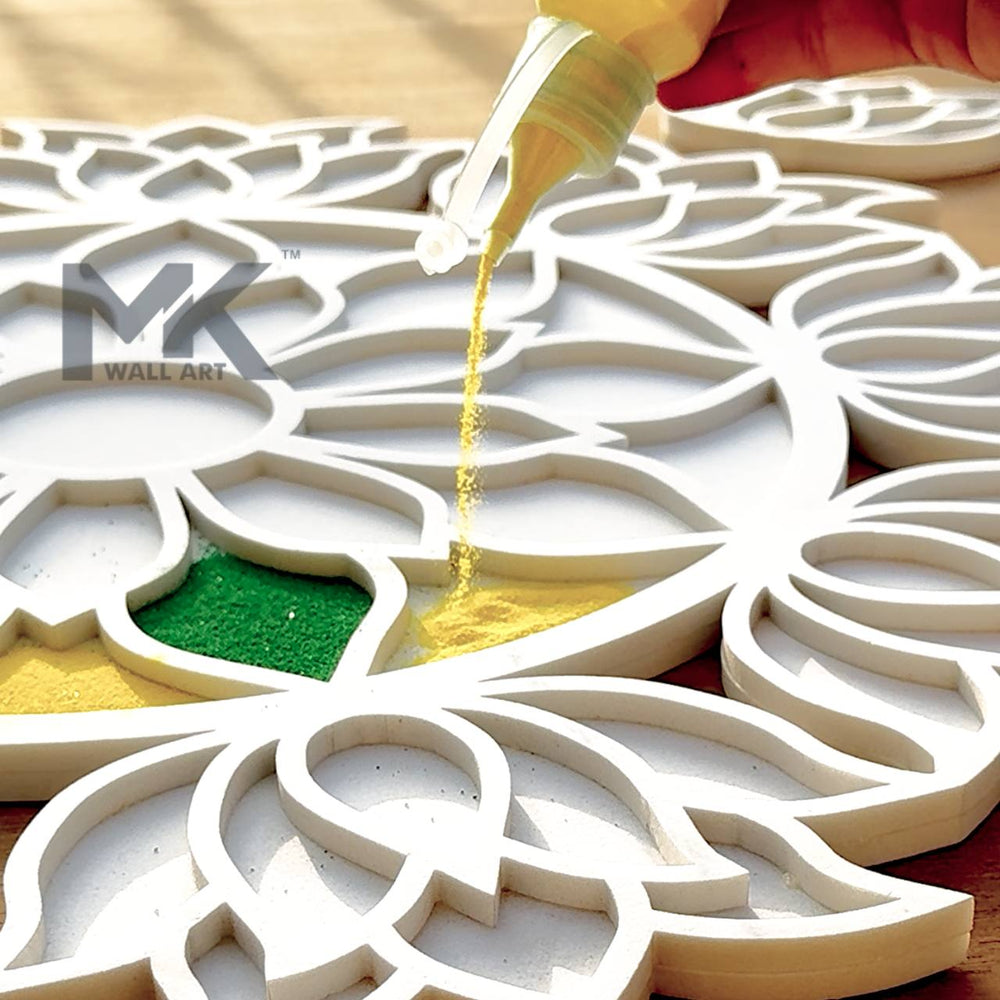 We work hand-in-hand with local artisans, whose hands are blessed with creativity, precision, and tradition. Each Rangoli is lovingly designed, carefully painted, and finished with deep attention to detail and they are made with heart, culture, and craftsmanship.